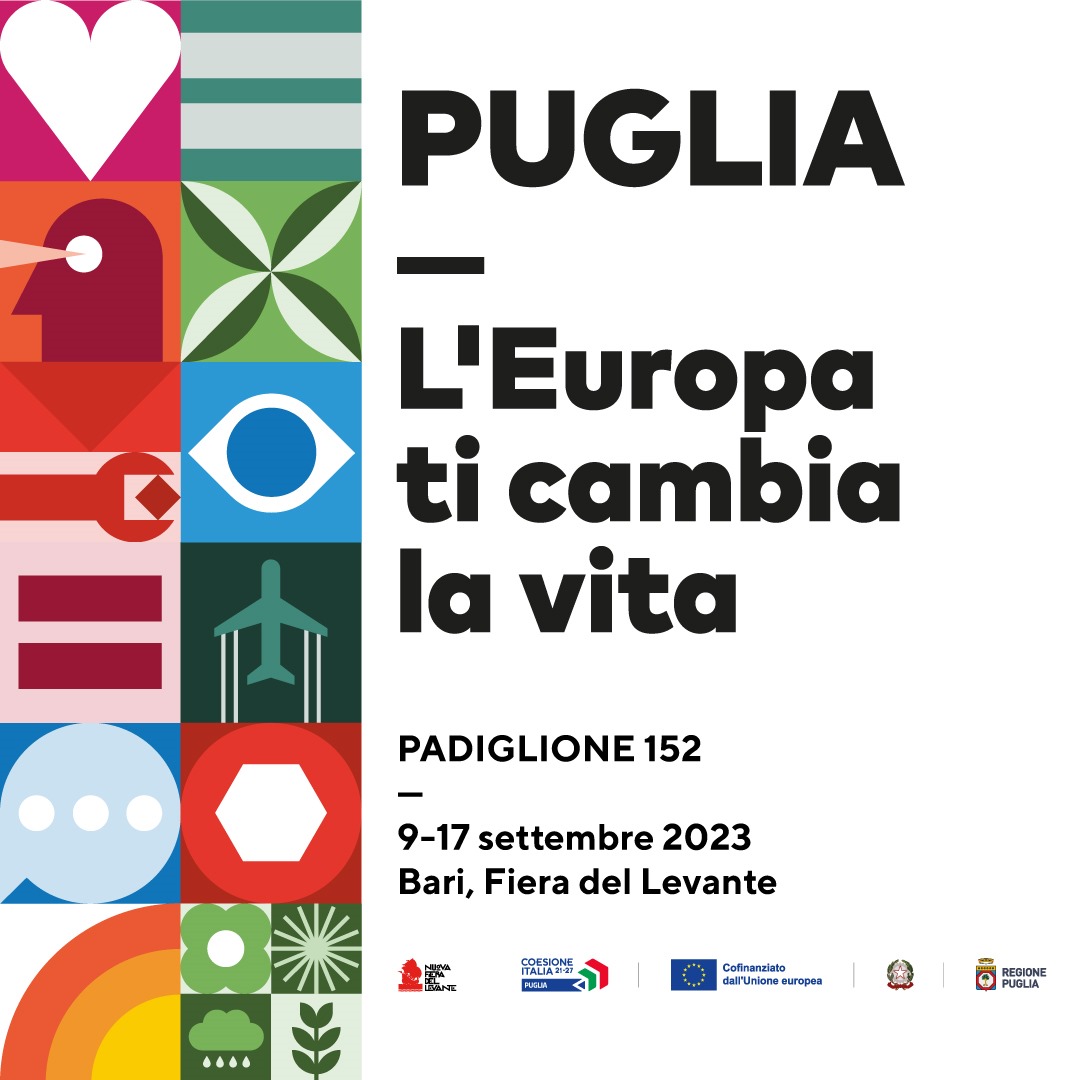 L'Europa ti cambia la vita è il tema della settimana organizzata dalla Regione Puglia in occasione dell’86^ edizione della Fiera del Levante, in programma a Bari dal 9 al 17 settembre 2023. Il ricco calendario di incontri, convegni e presentazioni è dedicato al nuovo Programma Regionale Puglia FESR-FSE+ 2021-2027, per il quale la Regione Puglia ha ottenuto circa 5,5 miliardi di finanziamenti europei. Grazie a queste risorse, 4 milioni di pugliesi potranno beneficiare di opportunità e iniziative che, come recita il motto scelto per promuovere la nuova Programmazione, possono cambiare in meglio la loro vita.