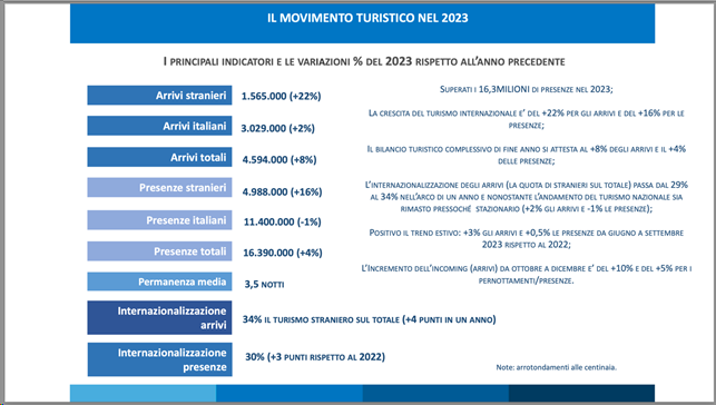 • positivo il trend estivo: +3% gli arrivi e +0,5% le presenze da giugno a settembre 2023 rispetto al 2022;