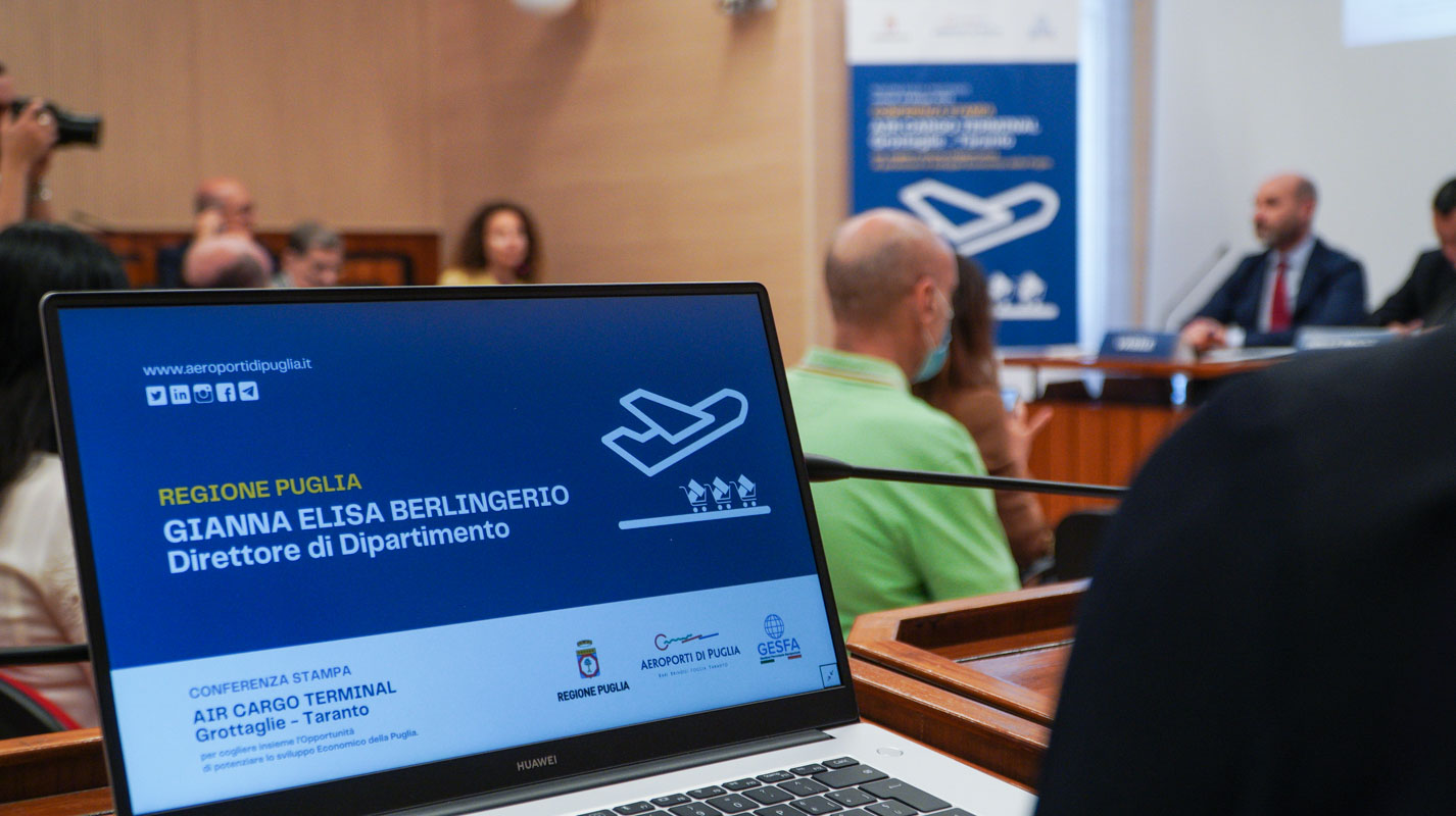 Il progetto, i cui lavori partiranno a metà giugno, è stato illustrato stamattina nel corso di una conferenza stampa che si è tenuta nella sala ‘De Jeso’ del Palazzo della Presidenza della Regione Puglia e alla quale hanno partecipato l’assessore allo Sviluppo economico della Regione Puglia, il presidente e il direttore generale di Aeroporti di Puglia, Antonio Maria Vasile e Marco Catamerò, la direttora del dipartimento regionale, Gianna Elisa Berlingerio, Giovanni Costantini già direttore Cargo Malpensa, Stefano Cavicchia Managing Director Gesfa e il sindaco di Grottaglie, Ciro D’Alò.