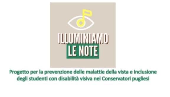 L’informazione e la formazione per garantire la totale inclusione. È quello che garantisce il progetto “Illuminiamo le note”, promosso dall'Assessorato Regionale all’Istruzione in collaborazione con l’Unione Italiana dei Ciechi e degli Ipovedenti – Consiglio Regionale della Puglia, con l’I.Ri.Fo.R. - Istituto per la Ricerca, la Formazione e la Riabilitazione Puglia e con i conservatori musicali pugliesi (Conservatorio di Musica “Niccolò Piccinni” – Bari, Conservatorio “Giovanni Paisiello” - Taranto, Conservatorio di Musica “Nino Rota” - Monopoli, Conservatorio “Tito Schipa” - Lecce, Conservatorio “Umberto Giordano” - Foggia e Rodi Garganico).