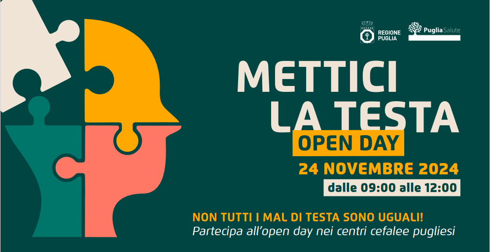 L’Open day regionale è previsto domenica 24 novembre. Hanno aderito 19 centri in tutta la Puglia e dalle 9 alle 12 sarà possibile effettuare un consulto gratuito indirizzato a chi soffre di mal di testa ricorrenti, intensi e difficili da trattare.