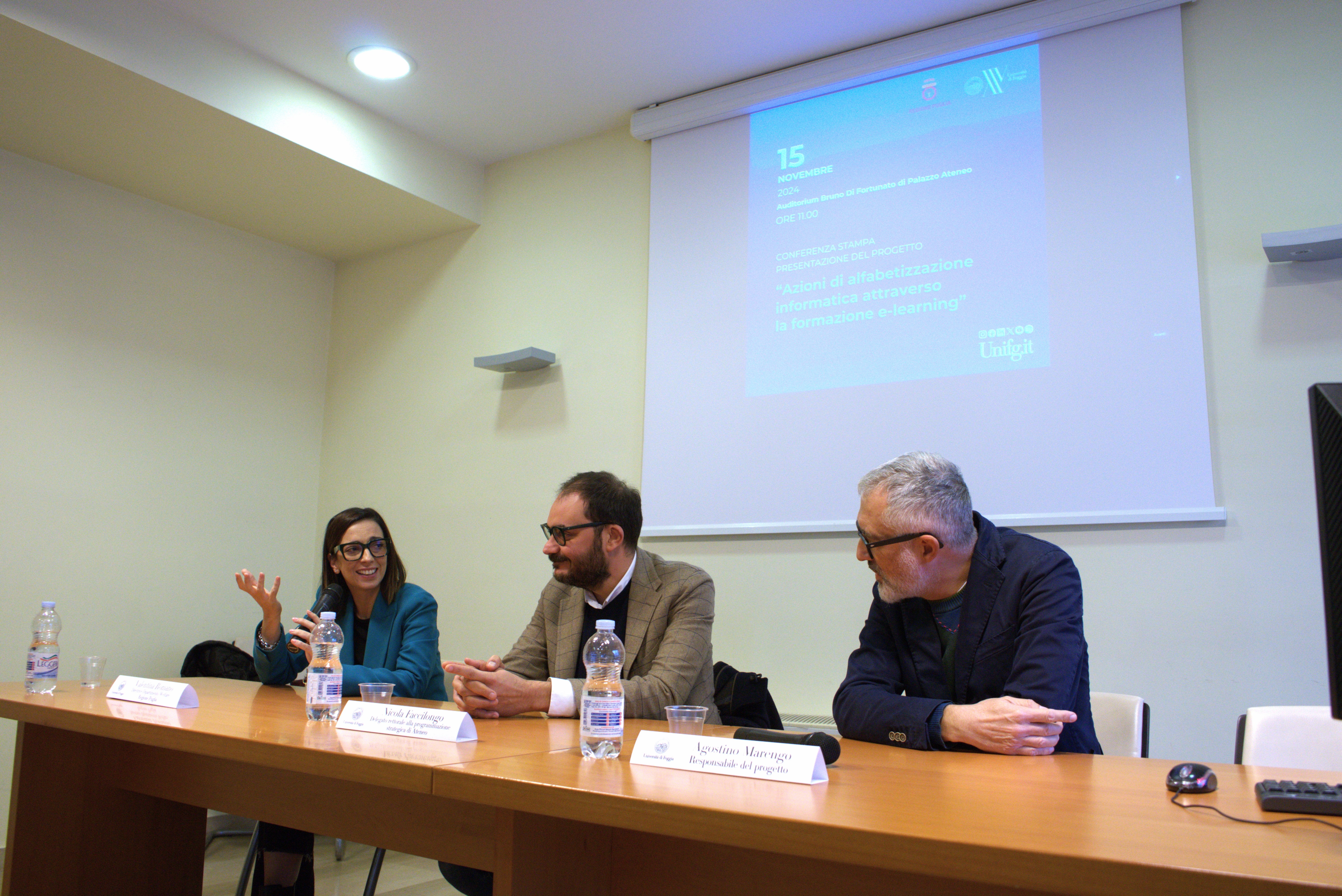 Si è concluso con successo il progetto di alfabetizzazione informatica "Azioni di alfabetizzazione informatica attraverso formazione e-learning," promosso dalla Regione Puglia e realizzato dal Dipartimento di Studi Umanistici dell’Università degli Studi di Foggia e presentato questa mattina nel corso di una conferenza stampa svoltasi a Palazzo Ateneo. Con un finanziamento di €40.000, il progetto ha permesso di migliorare le competenze digitali di 657 cittadini pugliesi, con un’attenzione particolare verso le categorie sociali più svantaggiate, superando barriere logistiche e fornendo opportunità di apprendimento digitale accessibili.