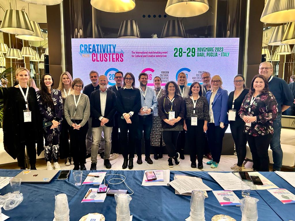 “Creativity Meets Clusters, l’evento internazionale di matchmaking per il settore culturale e creativo,  giunge alla seconda edizione e Puglia Creativa torna a rendere Bari e la Puglia protagonista nella definizione di nuove visioni e strategie per la crescita dell’ecosistema culturale e creativo nazionale, europeo ed internazionale attivando dinamiche di costruzione dal basso di politiche per il settore e a creare opportunità per le imprese pugliesi della cultura e della creatività, offrendo occasioni di networking a livello internazionale - il commento di Vincenzo Bellini,  presidente dell’ Associazione Distretto Produttivo Puglia Creativa – Saranno presenti a Bari 50 imprese estere da Belgio, Bulgaria, Canada, Estonia, Finlandia, Galles, Germania, Grecia, Irlanda, Lituania, Slovenia, Spagna, Colombia, Brasile per entrare in contatto con i nostri operatori. L’evento offre la grande opportunità di avviare nuove progettazioni, di creare partenariati, di cogliere le opportunità offerte dai bandi europei e di aprirsi ai mercati internazionali”.