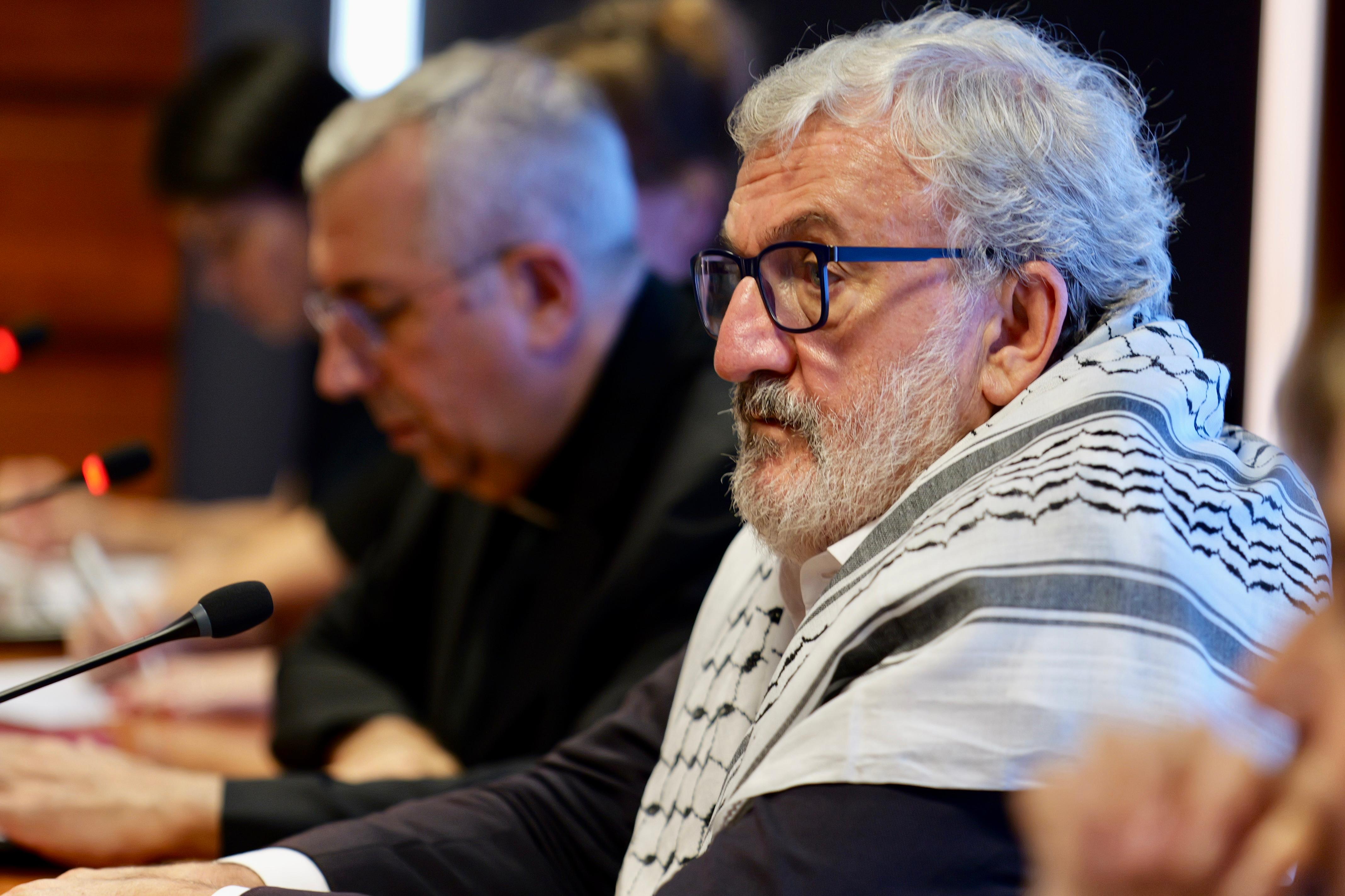 All’inizio dell’incontro, il presidente Emiliano ha ricevuto in dono una kefiah dal dott. Bassem Jarbam, medico residente a Bari e esponente della comunità palestinese in Puglia.