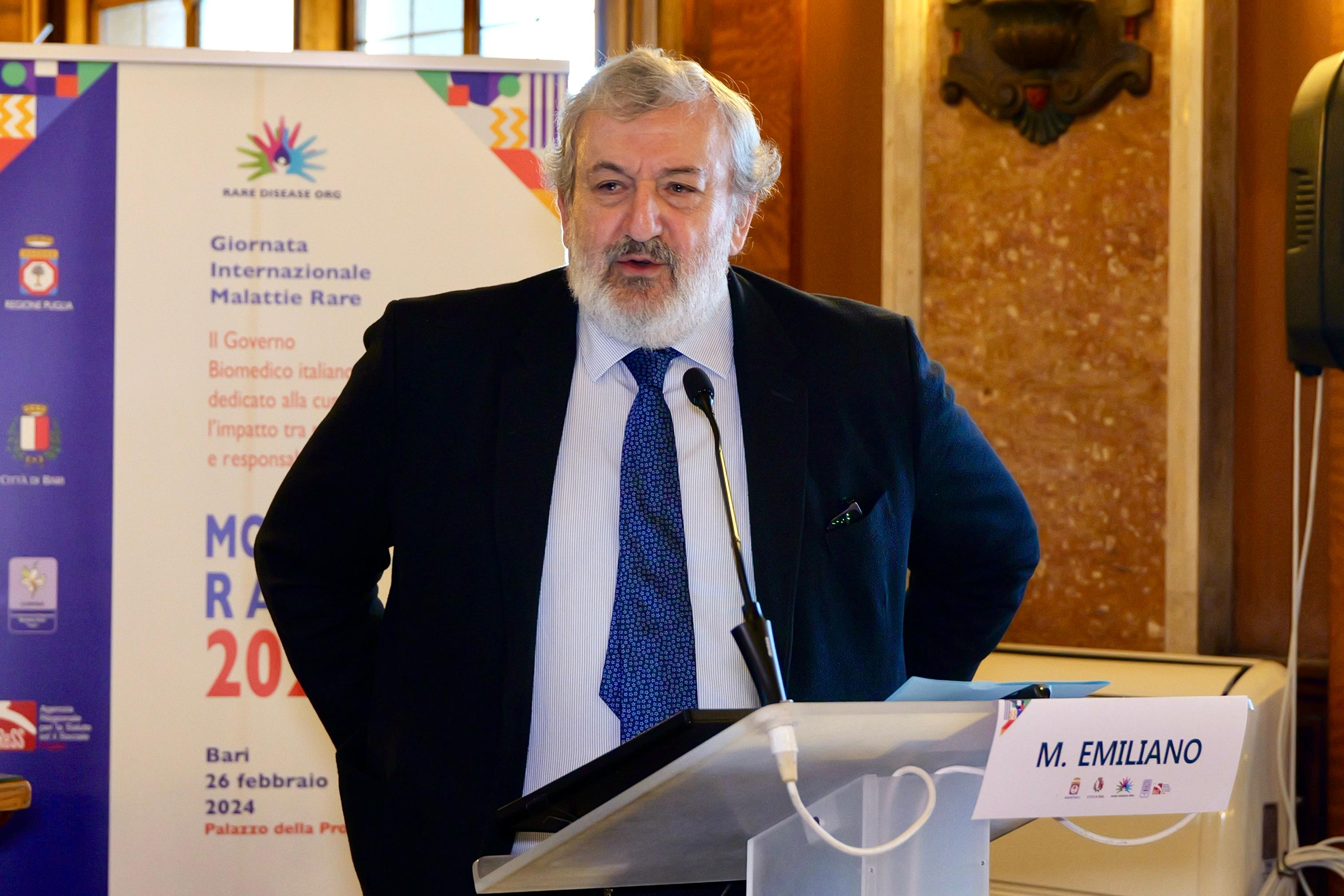 E’ intervenuto il presidente della Regione Puglia, Michele Emiliano, cha ha sottolineato come “la Puglia ha costruito a partire dal 2017 un modello di gestione delle malattie rare che oggi è diventato punto di riferimento per il governo italiano e oggetto di analisi anche per l'Unione Europea a livello continentale. Si tratta di individuare centri di riferimento provinciali che con la collaborazione di tutta la struttura sanitaria generale consentano di individuare e diagnosticare le malattie rare, con la possibilità che vengano curate.