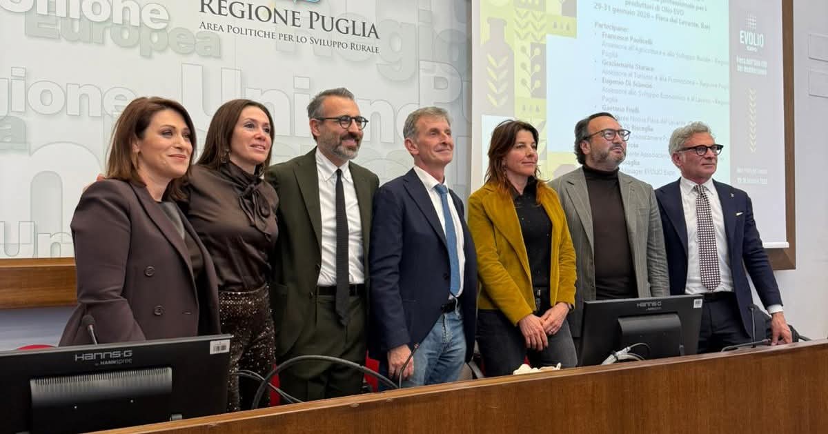 Presentata questa mattina, 26 gennaio 2026, a Bari, in conferenza stampa, la seconda edizione di EVOLIO Expo 2026, fiera di riferimento B2B dedicata all’olio extra vergine di oliva, in programma da giovedì 29 a sabato 31 gennaio 2026 alla Fiera del Levante di Bari, patrocinata dal MASAF – Ministero dell’Agricoltura, della Sovranità alimentare e delle Foreste. La manifestazione è organizzata da Senaf per conto di Nuova Fiera del Levante con il sostegno del Dipartimento Agricoltura della Regione Puglia e del Dipartimento Sviluppo Economico, di Pugliapromozione e dell’Associazione Nazionale Città dell’Olio.