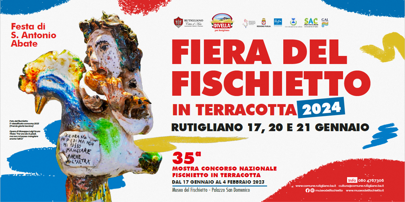 Sarà presentata martedì 16 gennaio alle ore 15:00 presso la Sala Stampa della Giunta - Palazzo della Presidenza della Regione Puglia (III piano) la Fiera del Fischietto in Terracotta 2024 del Comune di Rutigliano che si terrà nei giorni 17, 20 e 21 gennaio.