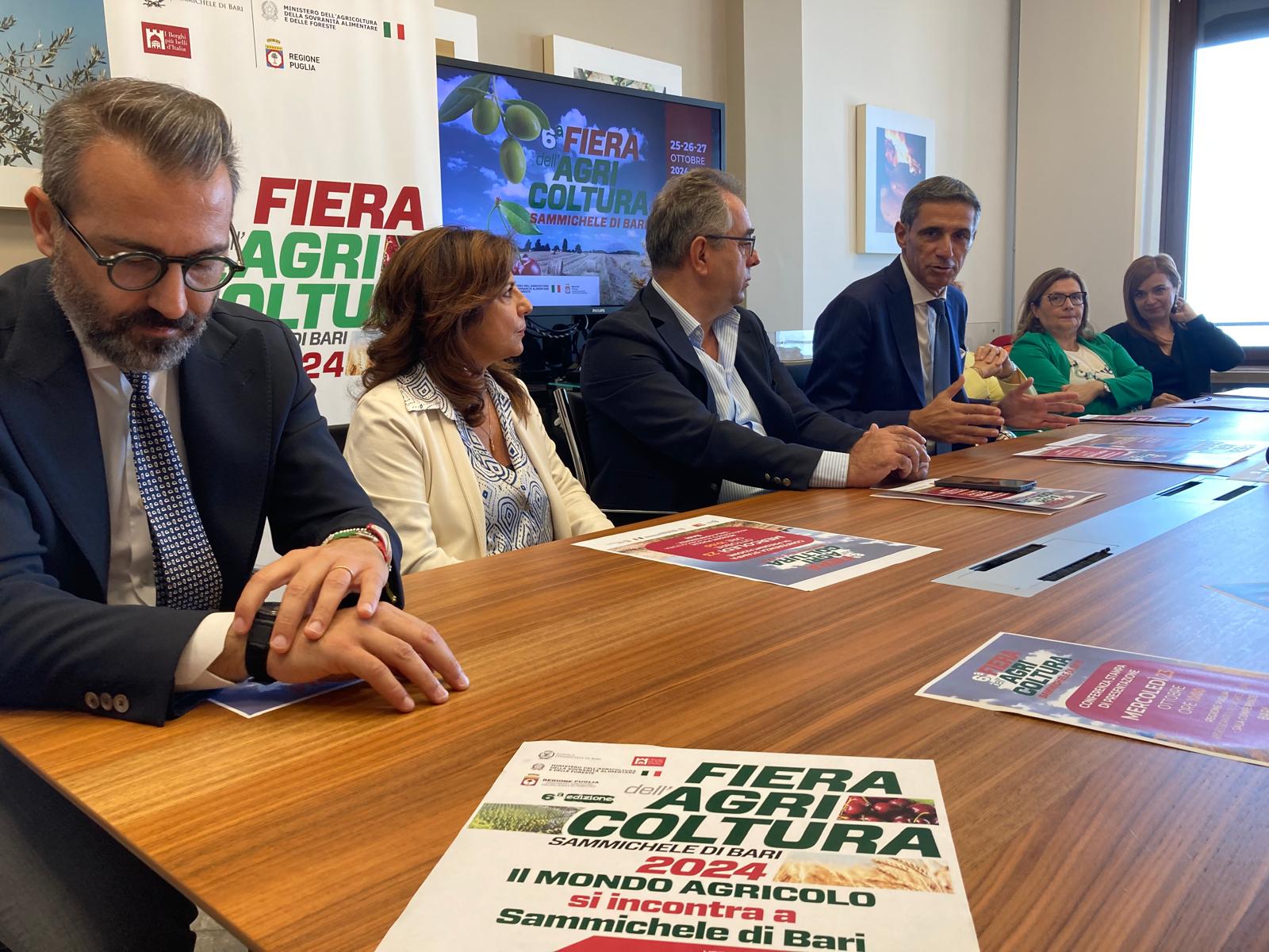 Da venerdì 25 ottobre fino a domenica 27 ottobre 2024 torna a Sammichele di Bari la Fiera dell’Agricoltura. L’iniziativa, giunta alla sesta edizione, è stata presentata nella Sala Conferenze del Dipartimento Agricoltura, Sviluppo rurale e ambientale dall’assessore all’Agricoltura della Regione Puglia, Donato Pentassuglia, dai consiglieri regionali Francesco Paolicelli e Lucia Parchitelli, il sindaco di Sammichele di Bari, Lorenzo Netti, e la vicesindaca con delega alle Attività produttive, Catia Giannoccaro.