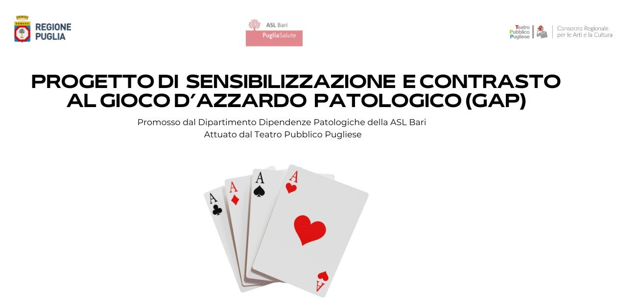 Saranno presenti Angela Lacalamita, Dirigente psicologa-psicoterapeuta del Dipartimento Dipendenze Patologiche ASL BA e Viviana Peloso, consigliera di amministrazione del Teatro Pubblico Pugliese. Intervengono anche Lino Manosperta responsabile ufficio progetti del Teatro Pubblico Pugliese, Saba Salvemini della compagnia Areté Ensemble e gli studenti di Bitonto Marco Vacca e Daniel Catalano, interpreti del brano musicale “Stop this addiction” prodotto durante il laboratorio teatrale realizzato al Liceo Scientifico “Galilei” di Bitonto.