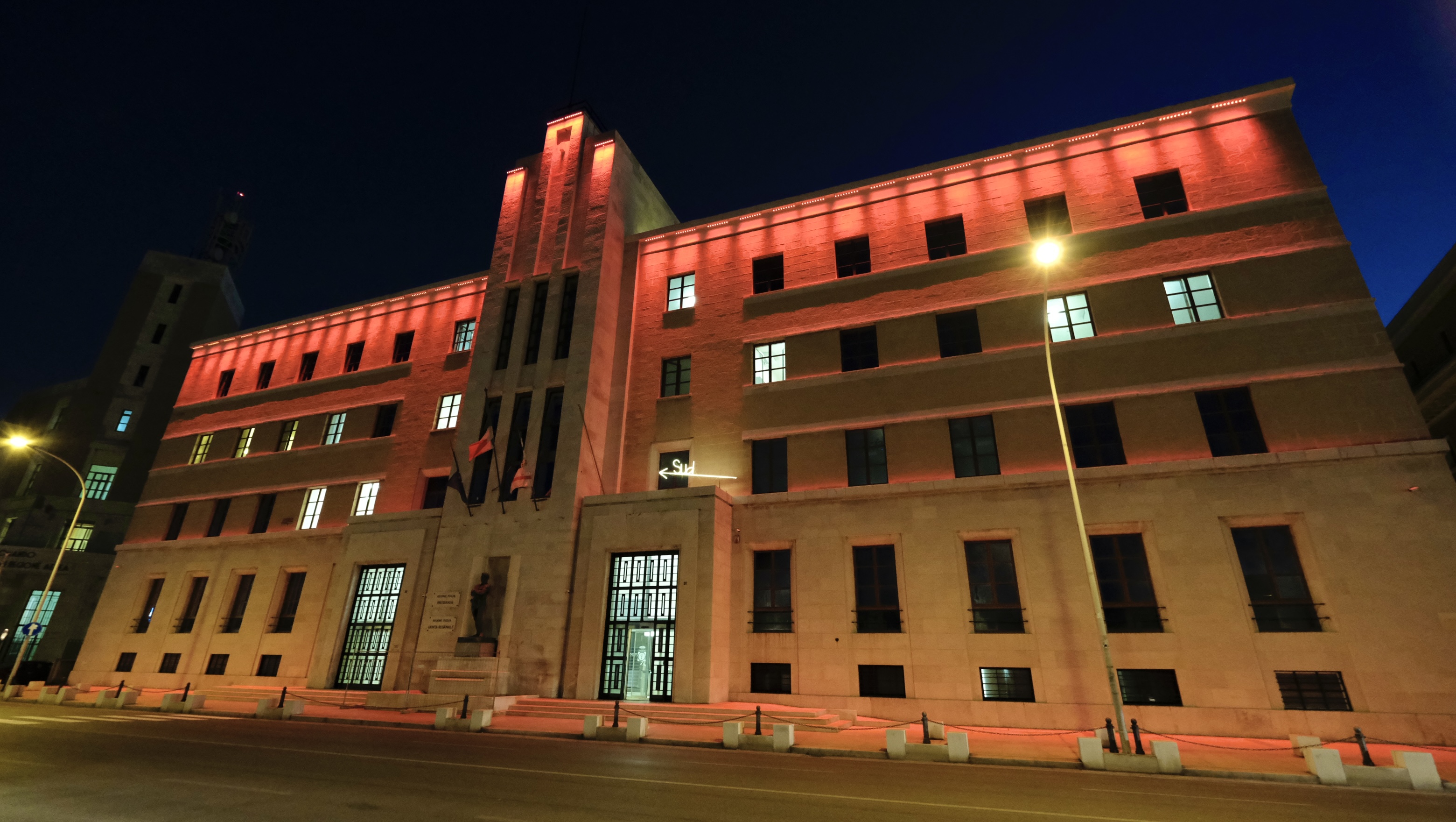 Il palazzo della Presidenza della Regione Puglia è stato illuminato in rosso questa sera in occasione della giornata internazionale contro la violenza sulle donne promossa dall'ONU.