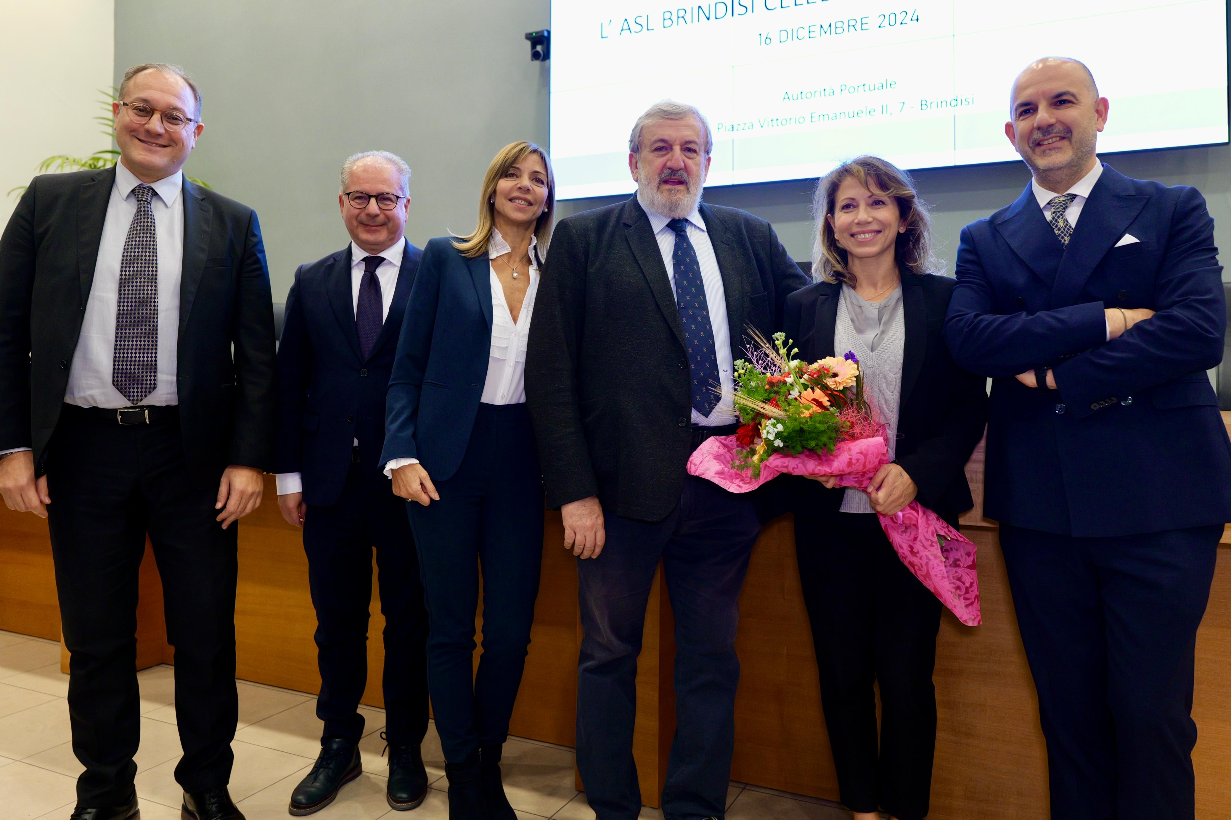 Il presidente della Regione, Michele Emiliano, ha partecipato oggi nella sala convegni dell'Autorità portuale di Brindisi alla cerimonia organizzata dalla Asl per salutare i circa cento lavoratori che sono andati in pensione nel corso dell'anno. A loro è stata consegnata una pergamena ricordo, come segno di gratitudine dell’azienda per il lavoro svolto.