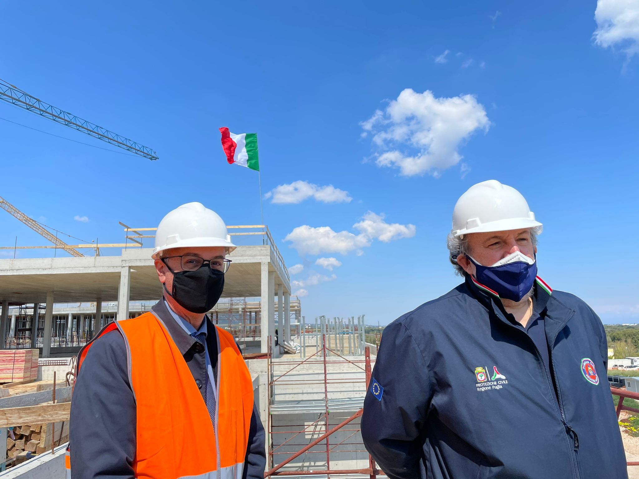 Il Tricolore sventola sul tetto del Nuovo Ospedale di Monopoli-Fasano Emiliano: “Sarà uno dei presidi ospedalieri più belli mai costruiti”