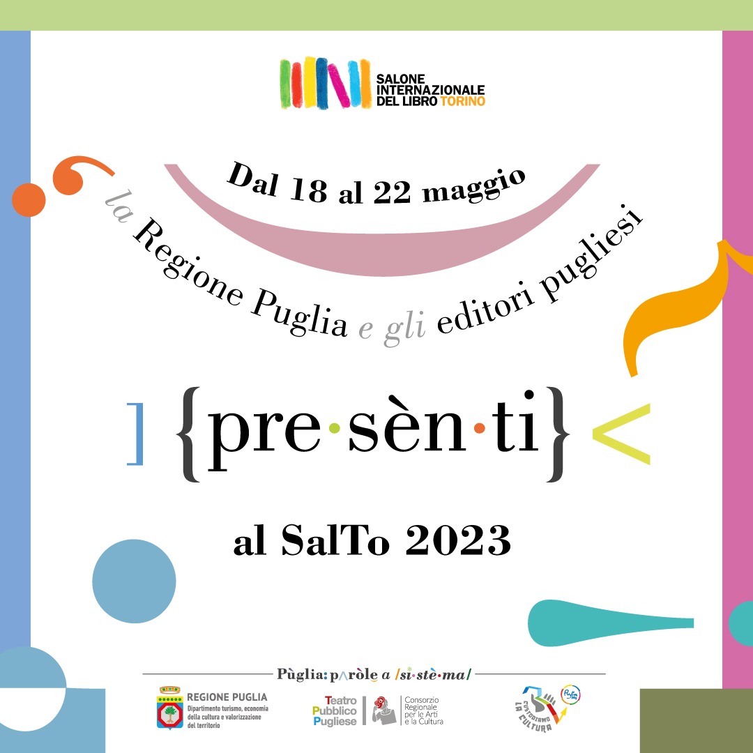 Anche quest’anno l’editoria pugliese sarà presente al Salone Internazionale del Libro di Torino, in programma dal 18 al 22 maggio, con uno stand istituzionale, 40 case editrici, un catalogo che promuove i festival e i premi letterari regionali e un fitto calendario con oltre 40 presentazioni.
