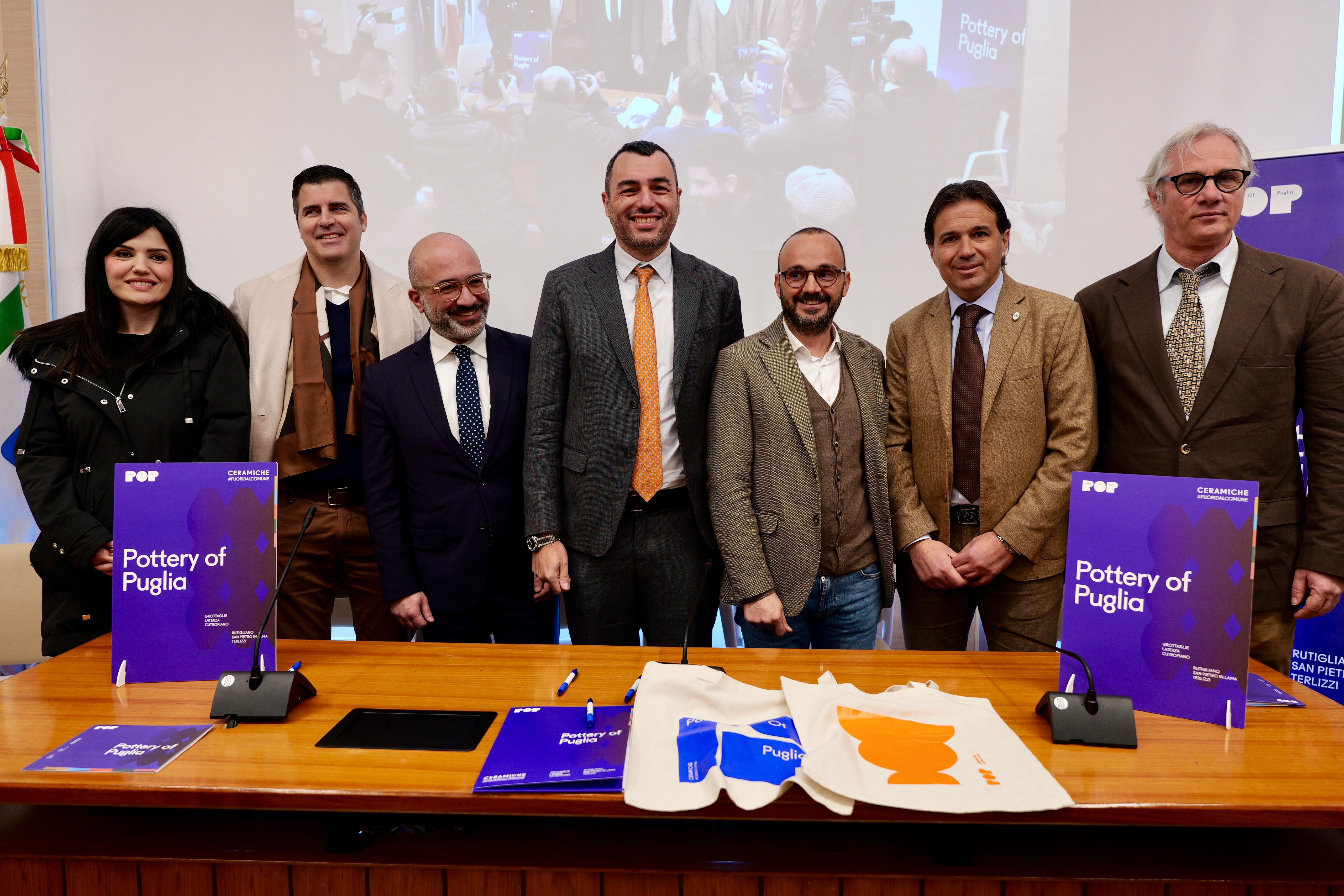 È stato presentato questa mattina in conferenza stampa il brand identificativo dei sei Comuni pugliesi di affermata tradizione ceramica. Presenti l’assessore regionale allo Sviluppo economico Alessandro Delli Noci, il sindaco di Cutrofiano Luigi Melissano, il sindaco di Grottaglie Ciro D’Alò, il sindaco di Rutigliano Giuseppe Valenzano, il sindaco di San Pietro in Lama Vito Pietro Mello, il sindaco di Terlizzi Michelangelo De Chirico e l’assessora al Turismo e Marketing di Laterza Sabrina Sannelli.