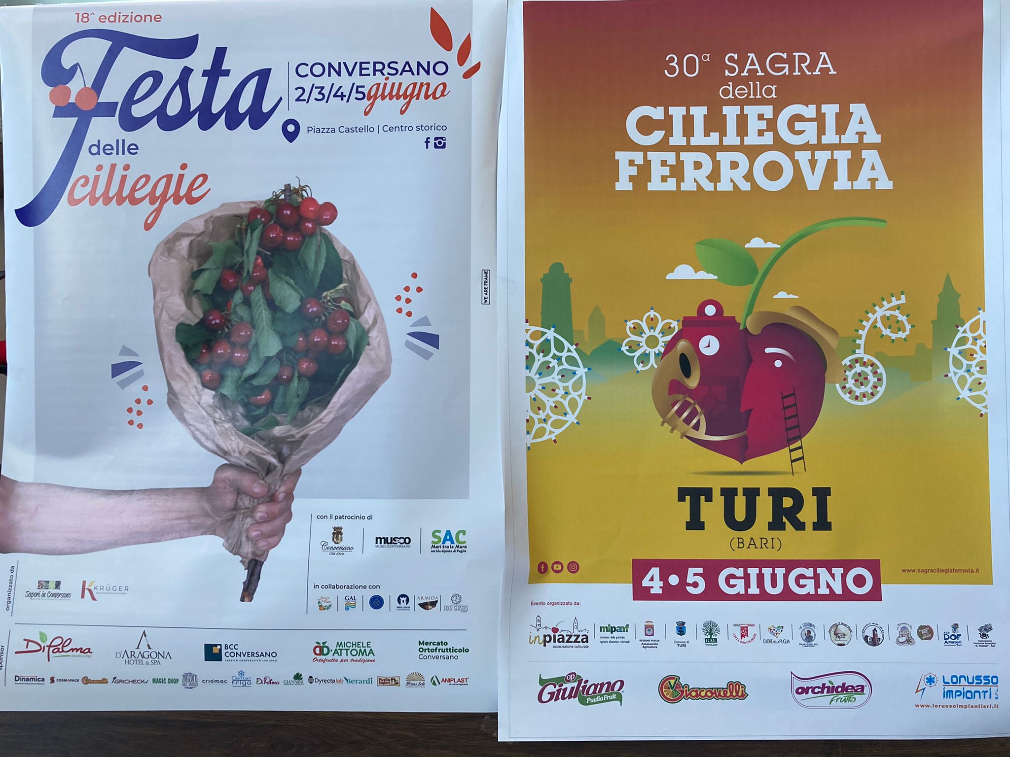 In allegato i programmi della Sagra della Ciliegia Ferrovia di Turi della Festa delle Ciliegie di Conversano.
