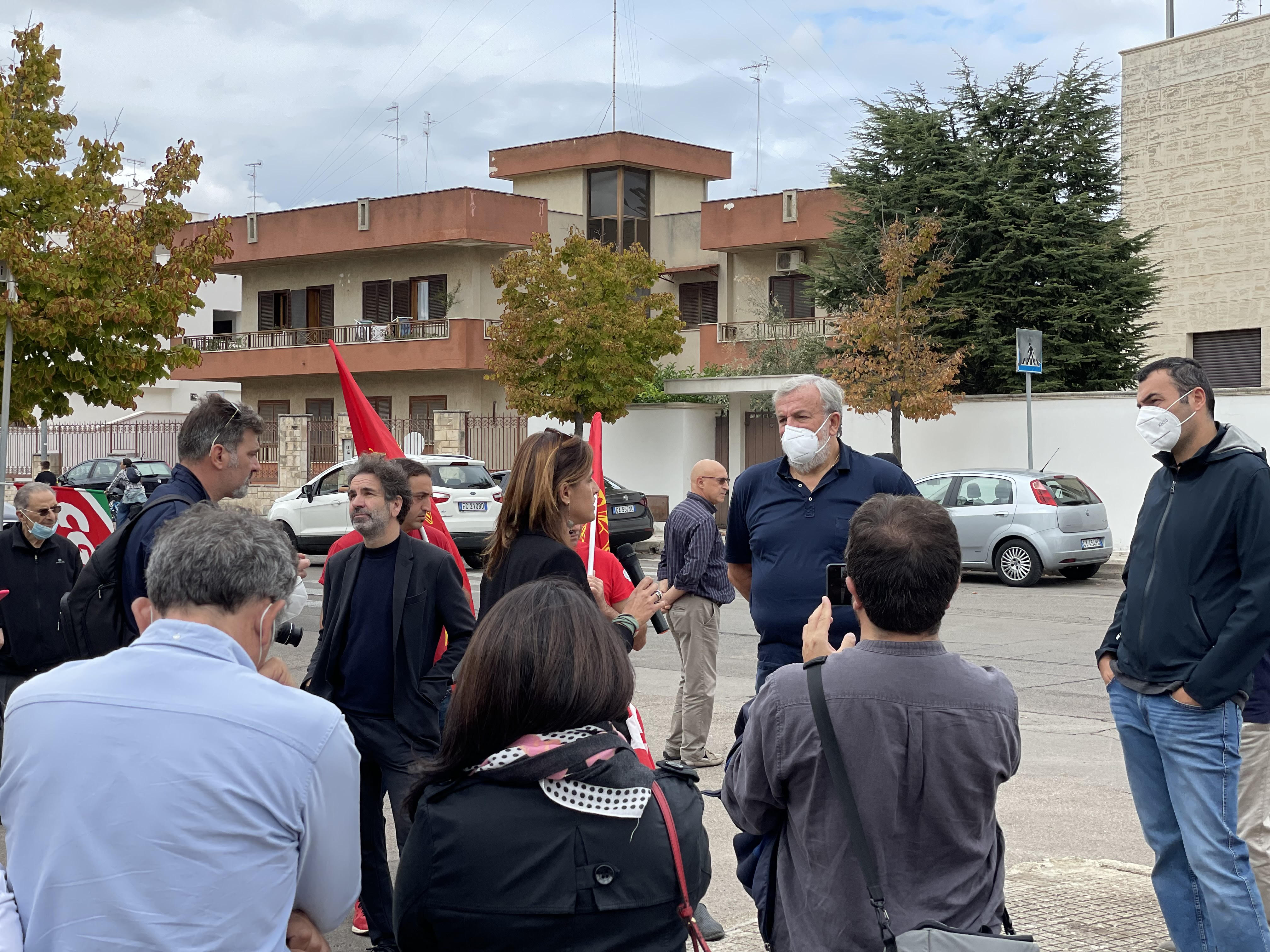 Il presidente della Regione Puglia Michele Emiliano ha portato oggi la sua solidarietà alla Cgil intervenendo al presidio organizzato nella sede di Lecce: