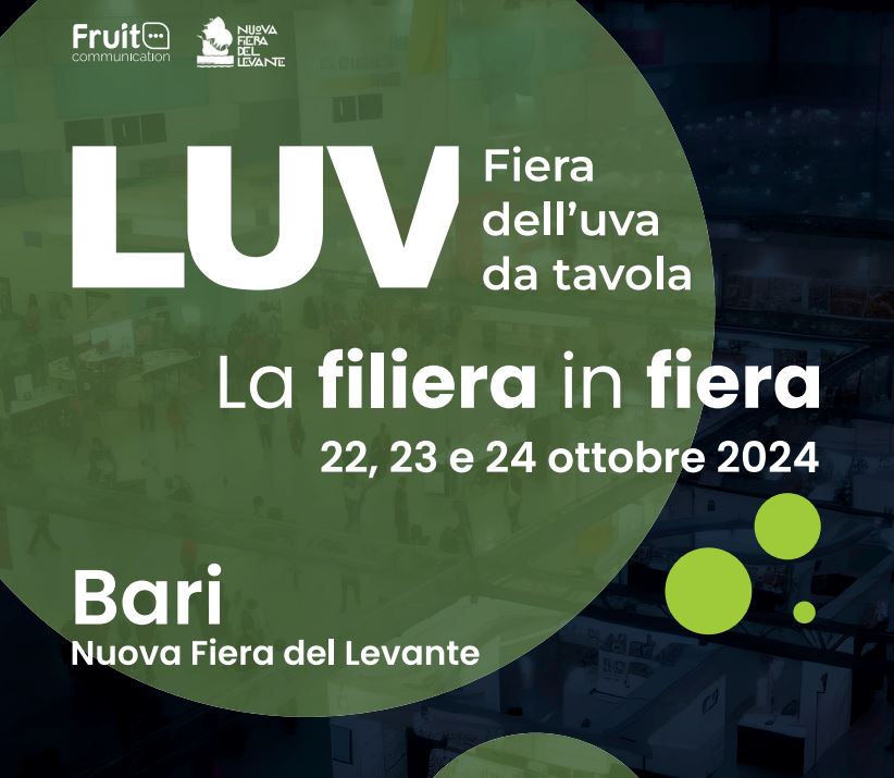 È ormai tutto pronto per l’apertura di LUV – Fiera dell’Uva da Tavola 2024, che dal 22 al 24 ottobre riunirà a Bari i protagonisti del settore agroalimentare in un contesto ideale per fare rete, sviluppare nuove opportunità di business e discutere il futuro del comparto. Nella cornice della Nuova Fiera del Levante, il mondo della viticoltura da tavola sarà esplorato in tre intense giornate di incontri, dibattiti e innovazioni. Un evento unico in Europa, a ingresso gratuito, dove l’attenzione sarà rivolta alla sostenibilità e allo sviluppo tecnologico offrendo un’occasione senza pari per tracciare le nuove direttrici del settore.