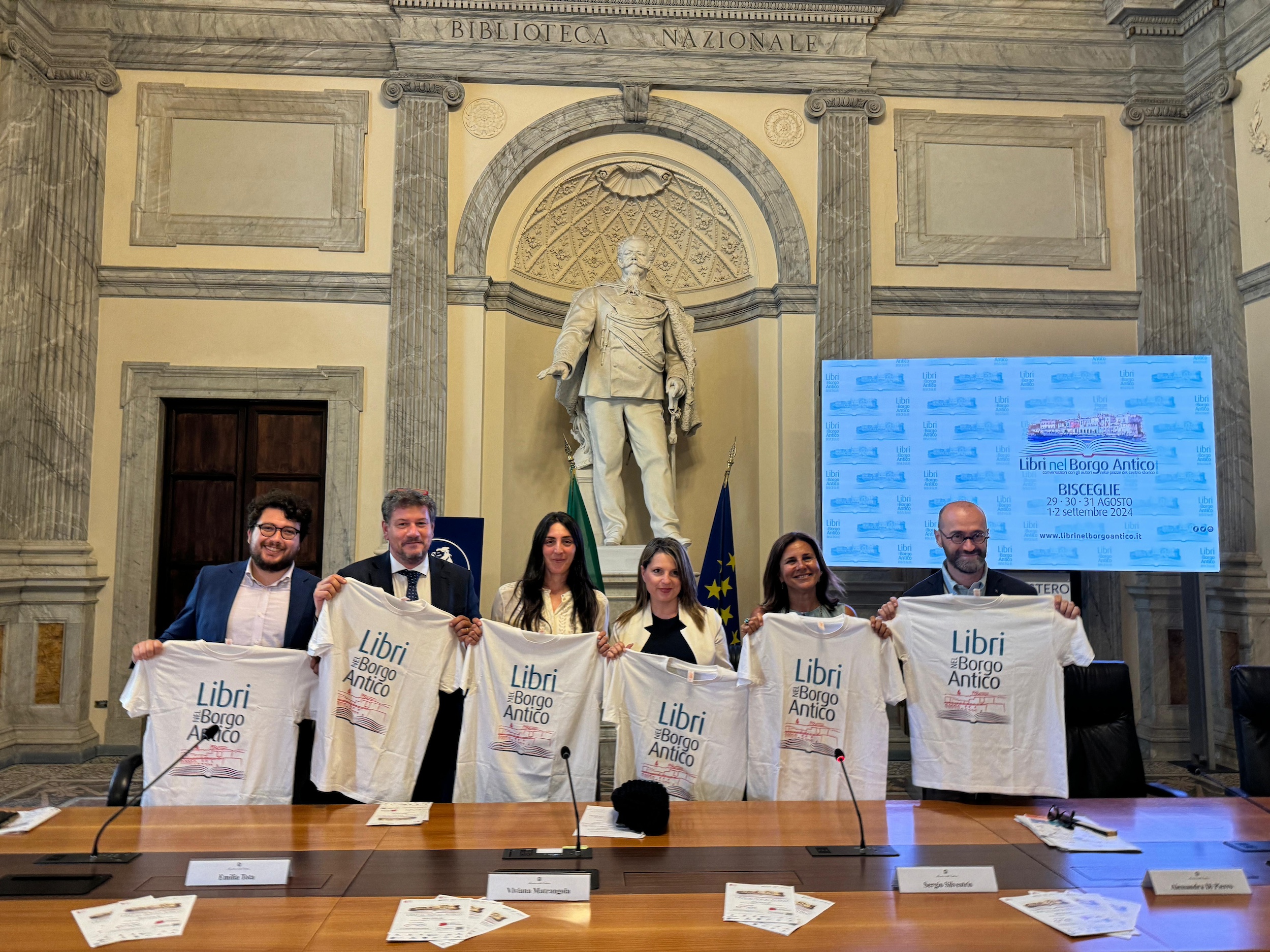 Il festival, sostenuto dalla Regione Puglia, è stato presentato questa mattina nella Sala Spadolini del Ministero della Cultura a Roma. Durante la conferenza stampa sono intervenuti: Gennaro Sangiuliano, ministro della Cultura, che sarà anche uno degli ospiti dell’edizione di quest’anno; Viviana Matrangola, assessore alla Cultura, Tutela e sviluppo delle imprese culturali, Politiche Migratorie, Legalità e Antimafia sociale della Regione Puglia; Aldo Patruno, direttore generale del Dipartimento Turismo, Economia della Cultura e Valorizzazione del Territorio di Regione Puglia; Emilia Tota, assessore alla cultura del Comune di Bisceglie; Alessandra Di Pierro, presidente di Associazione Borgo Antico; Sergio Silvestris, fondatore di Libri nel Borgo Antico.