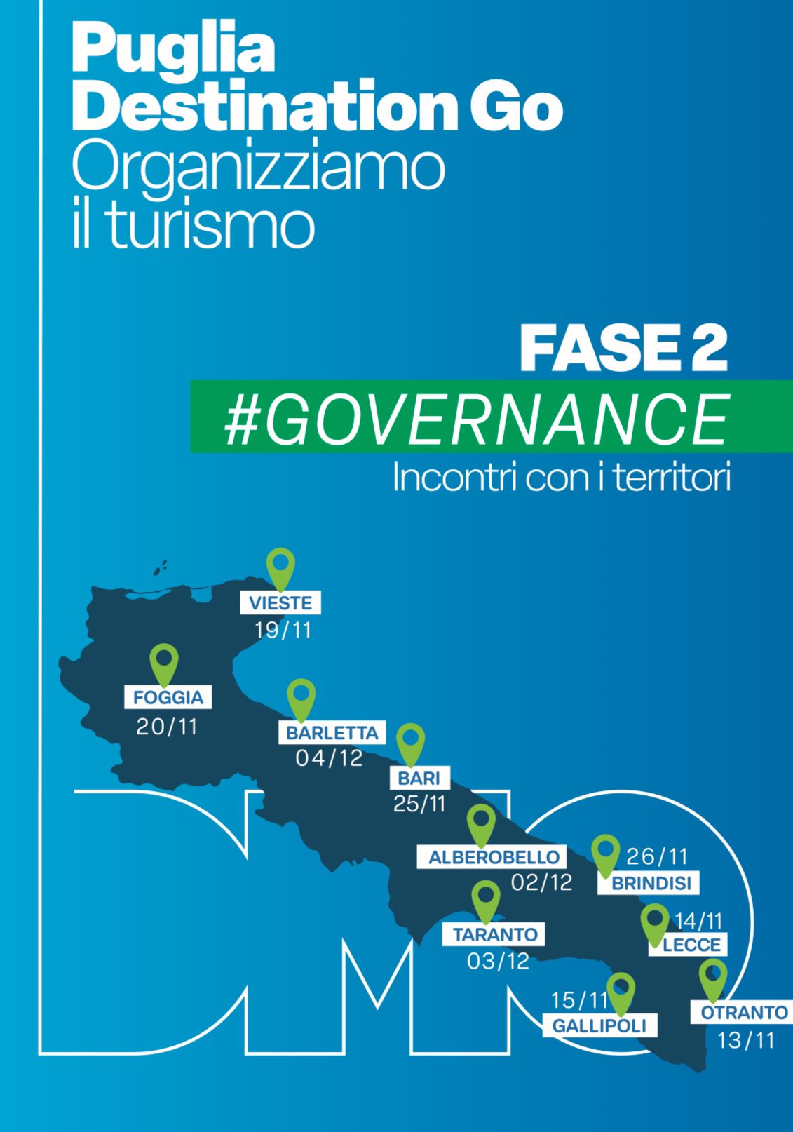 Quella in corso è la seconda fase del percorso partecipativo, iniziato il 14 e 15 ottobre scorsi a Bari, alla presenza di numerosi stakeholder pubblici e privati, che prevede in totale 10 tappe territoriali in altrettante città pugliesi per aprire al confronto sulla governance delle destinazioni pugliesi.