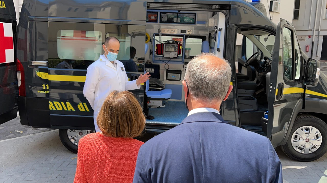 Un’ambulanza che farà base a Bari ma che potrà essere utilizzata su tutto il territorio regionale. È quella da oggi a disposizione dalla Guardia di Finanza della Puglia grazie anche a fondi della Regione. Alla presentazione del mezzo sanitario, questa mattina nel piazzale interno della Caserma Macchi sede del Comando Regionale della Guardia di Finanza, ha partecipato l’assessore regionale alla Sanità, Pier Luigi Lopalco, insieme al Comandante Interregionale dell’Italia Meridionale, Generale di Corpo d’Armata Ignazio Gibilaro, al Comandante Regionale Puglia, Generale di Divisione Francesco Mattana, e al Prefetto di Bari, la dott.ssa Antonia Bellomo.
