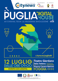Grande risposta del territorio foggiano e un confronto serrato e costruttivo tra Istituzioni, Aziende, Enti formativi e di ricerca hanno caratterizzato oggi “Puglia Digital House”, l’evento tenutosi nella Sala Fedora del Teatro Giordano di Foggia e organizzato da Citynews, azienda leader in Italia nell’informazione digitale (editrice di 53 quotidiani metropolitani online, della testata nazionale Today, del canale internazionale EuropaToday e delle testate verticali CiboToday e AgrifoodToday) in collaborazione con la Regione Puglia.