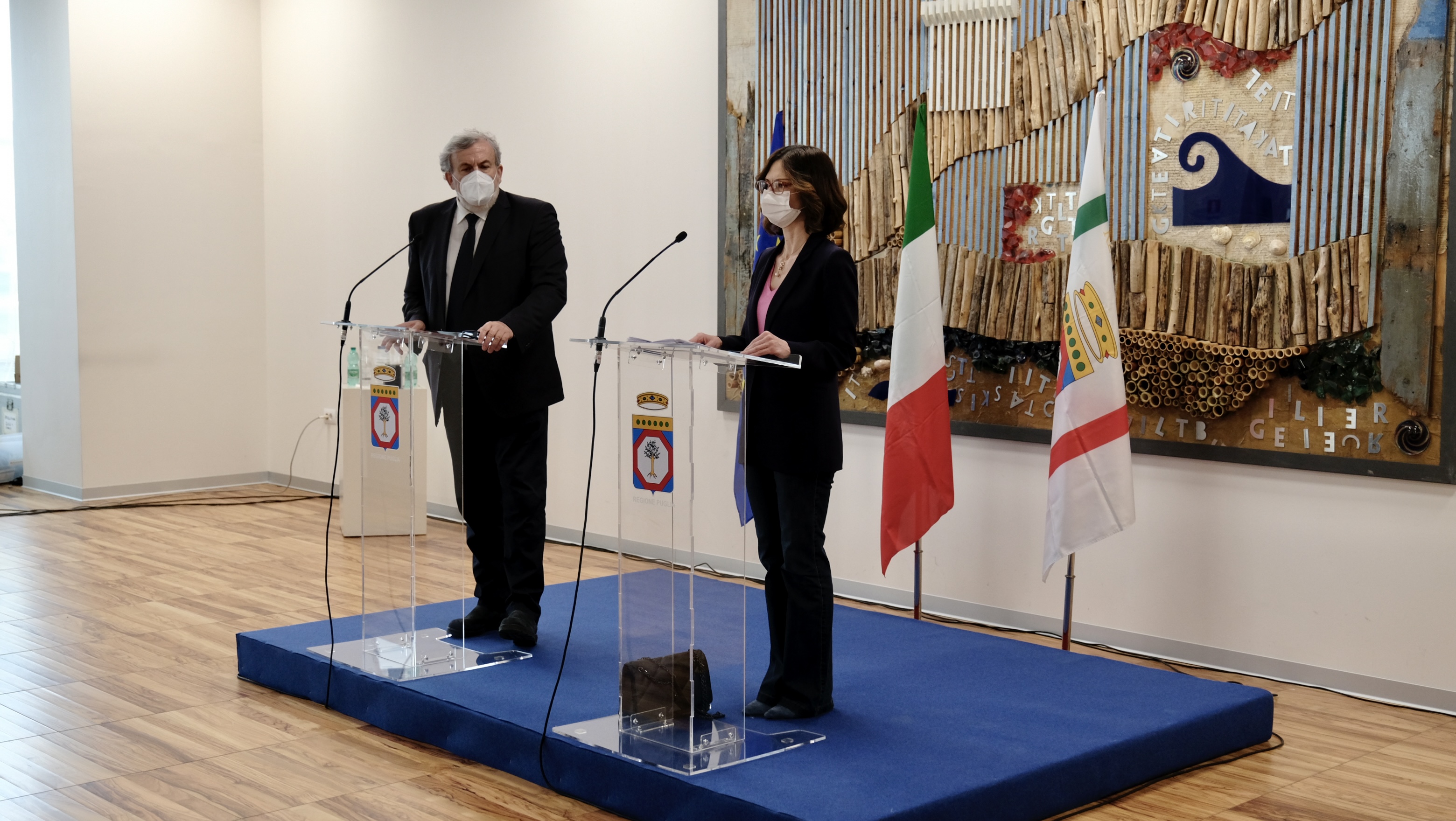 Il Presidente della Regione Puglia Michele Emiliano e il ministro per gli Affari regionali e le Autonomie, Mariastella Gelmini, hanno tenuto un punto stampa oggi a Bari, nella sede dell’aeroporto, in occasione dell’incontro sul Recovery Plan in programma nel pomeriggio con i componenti della Giunta regionale e i direttori di Dipartimento sul Recovery Plan.