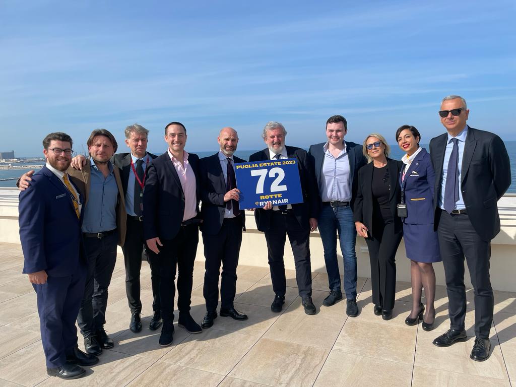 Ryanair ha presentato oggi nella sede della Presidenza della Regione Puglia un importante operativo estivo per la Puglia, con 72 rotte, tra cui 6 nuove rotte per Breslavia, Dublino, Kaunas, Poznan, Skiathos e Venezia, e oltre 770 voli settimanali da/per Bari e Brindisi. La compagnia inoltre baserà 5 aeromobili in Puglia per l'estate 2023 con un investimento di 500 milioni di dollari e supporterà 150 posti di lavoro altamente retribuiti per piloti, personale di cabina e ingegneri, con un indotto di oltre 4.200 posti di lavoro totali. Secondo le stime aziendali si prevedono oltre il 60% di crescita rispetto al periodo pre-Covid e 5,5 milioni di passeggeri da/per la nostra regione.