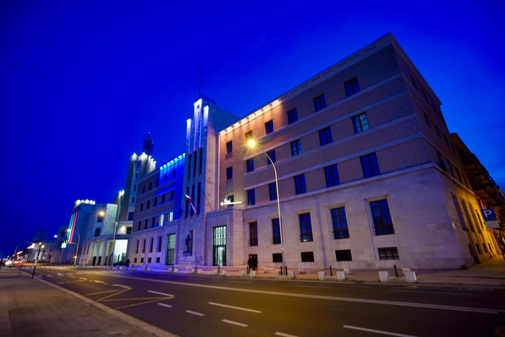 In occasione dell'anniversario dell'invasione russa avvenuto nella notte tra il 23 e il 24 febbraio del 2022, oggi il palazzo della Presidenza della Regione Puglia, sul lungomare Nazario Sauro di Bari, è stato illuminato con il giallo e il blu, i colori della bandiera ucraina per solidarietà con il popolo ucraino.