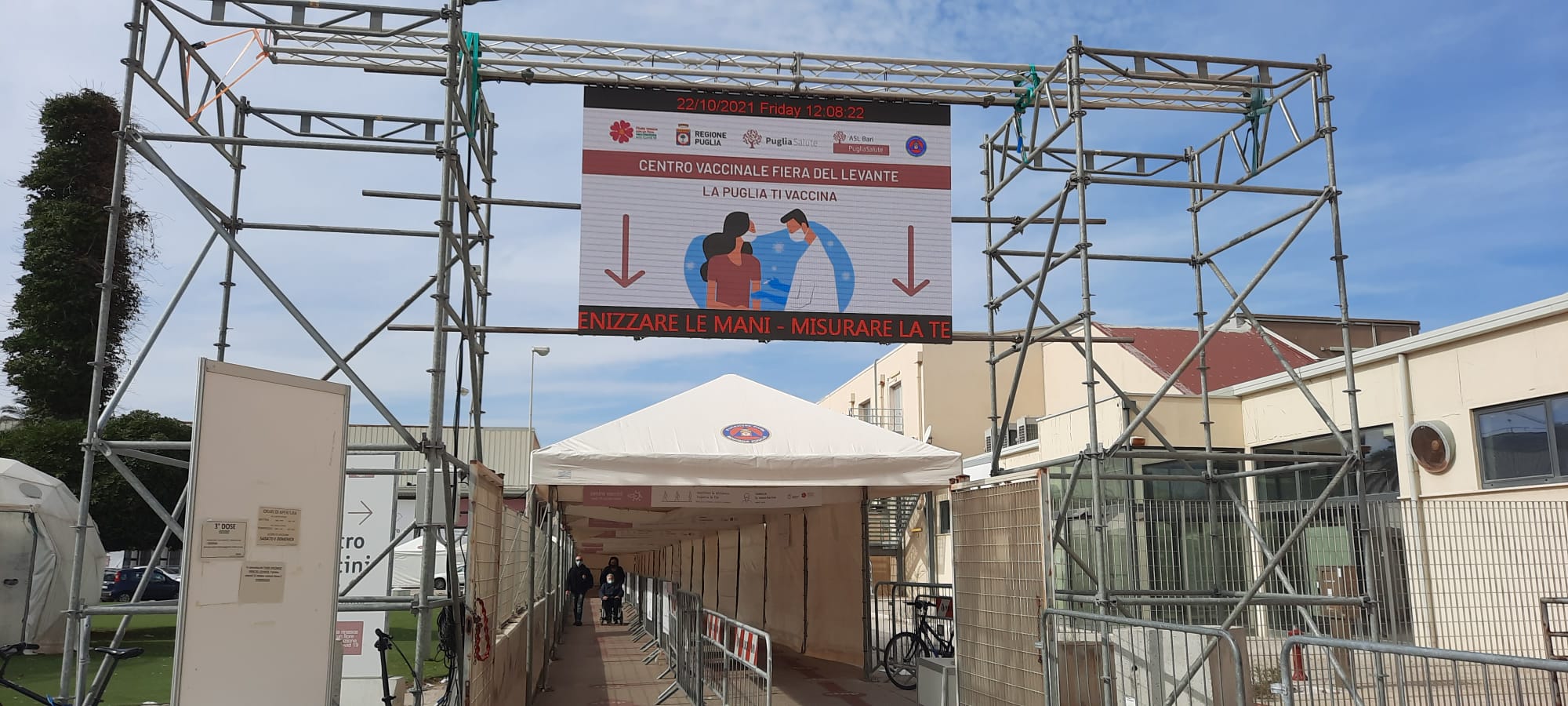 La campagna vaccinale nel territorio della ASL Bari ha totalizzato sino ad oggi 1 milione e 954.978 somministrazioni. L’impatto della grande adesione della popolazione over 12 si riflette sulle percentuali di copertura: 90% con almeno una dose di vaccino, 87% per il ciclo completo, un punto in più rispetto alla settimana precedente. Notevole l’effetto-traino garantito dalla popolazione over 60, vaccinata con prima dose al 97% e in modo completo al 95%, e dalla fascia 12-19 anni in età scolastica: l’86% dei giovanissimi ha già ricevuto la prima dose, l’81% (in crescita di due punti in una settimana) ha ultimato la schedula vaccinale. (in allegato foto hub Bari Fiera terze dosi)