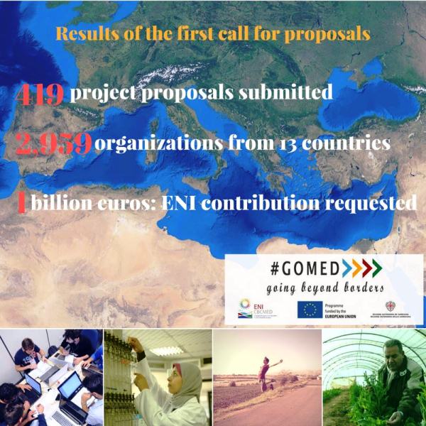 Sono state presentate 419 proposte nell’ambito della prima call for standard projects del Programma di Vicinato ENI CBC “Mediterraneo” per il periodo 2014-2020, con la partecipazione al bando di 2.959 organizzazioni provenienti da 13 paesi dello spazio euromediterranea. Ogni progetto avanzato offre contributi interessanti per rendere il Mediterraneo un’area più competitiva, innovativa, inclusiva e sostenibile.